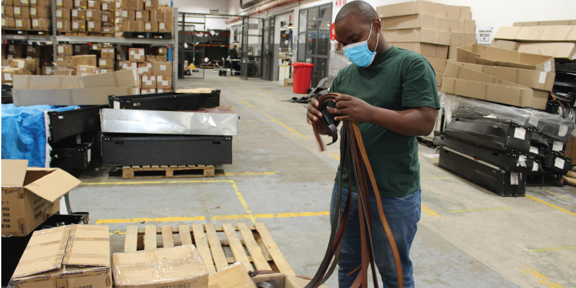 Enter Lungani Manqele, in charge of Waste Management and Sales. Part of what Lungani does on a daily basis is sort through rejects, materials off-cuts and raw materials waste products from the factory with the aim to sell and donate these products to small businesses and informal traders.